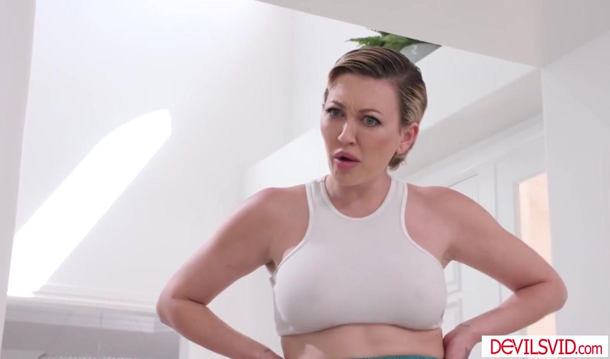Big tits Adira Allure forgot that she didnt wear panties which makes her neighbor hard. She accepts his invitation and goes straight sucking his big cock. They start fucking after giving him sloppy blowjob. The guy makes her squirt then do her ass.