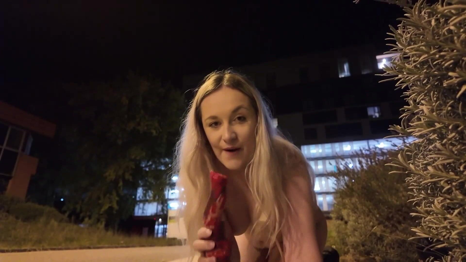 La francaise Louise se masturbe avec son godemiche dans la rue