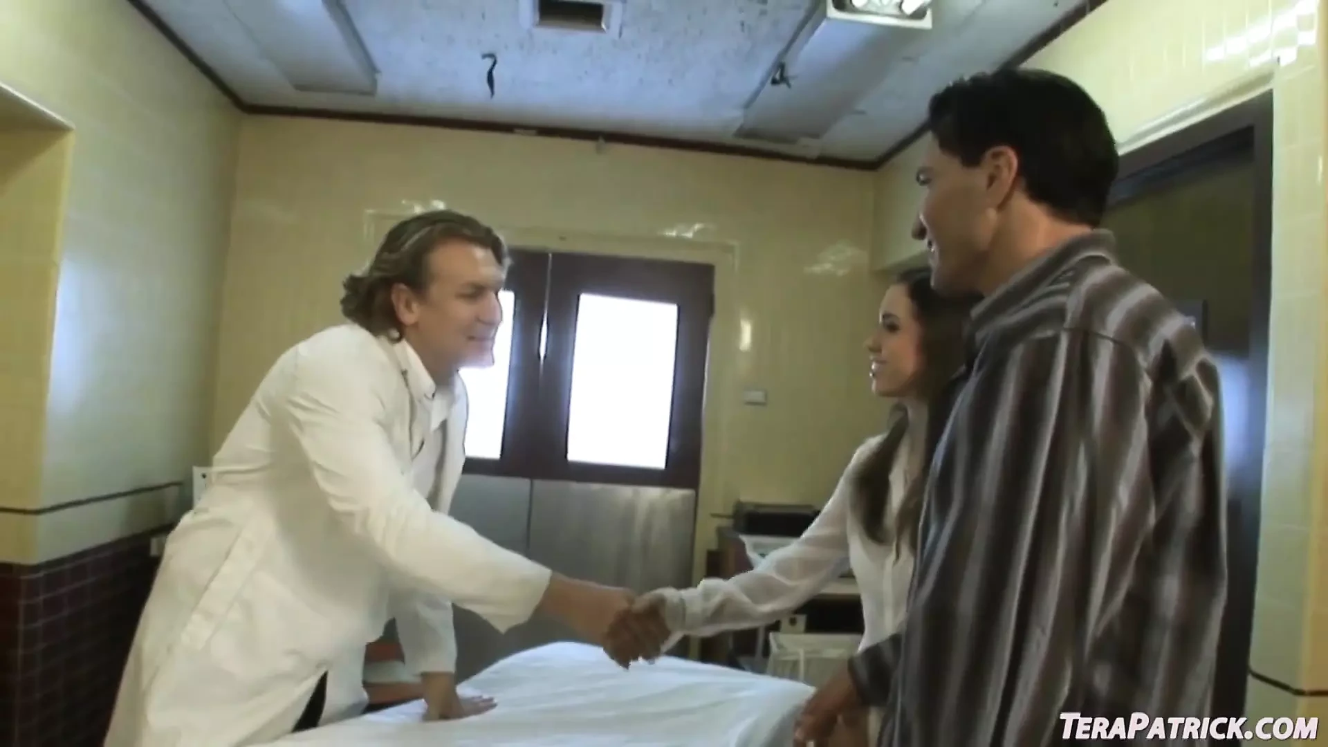 Hot brunette Courtney James gets fucked by two men