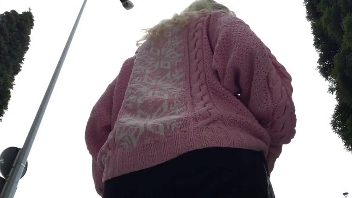 Blonde girl records her farts in a few public places.
