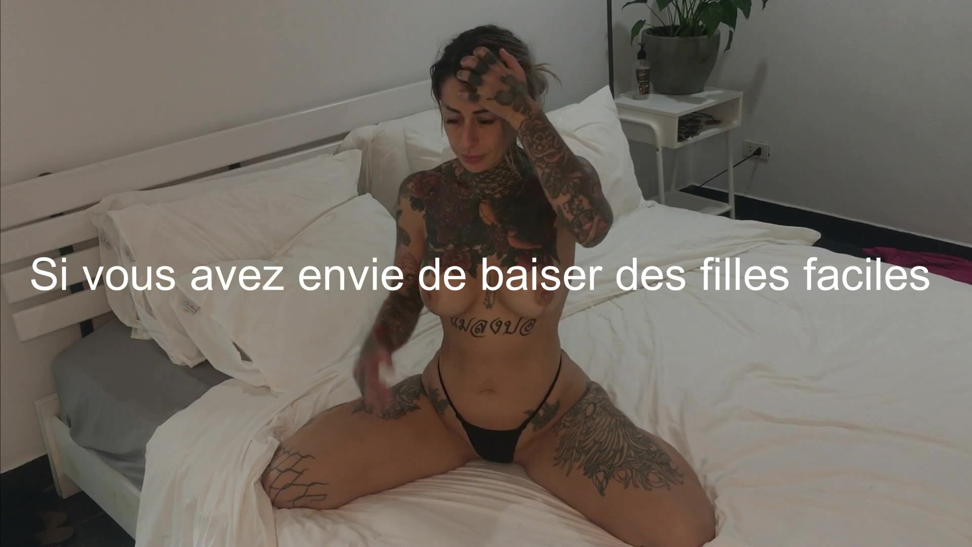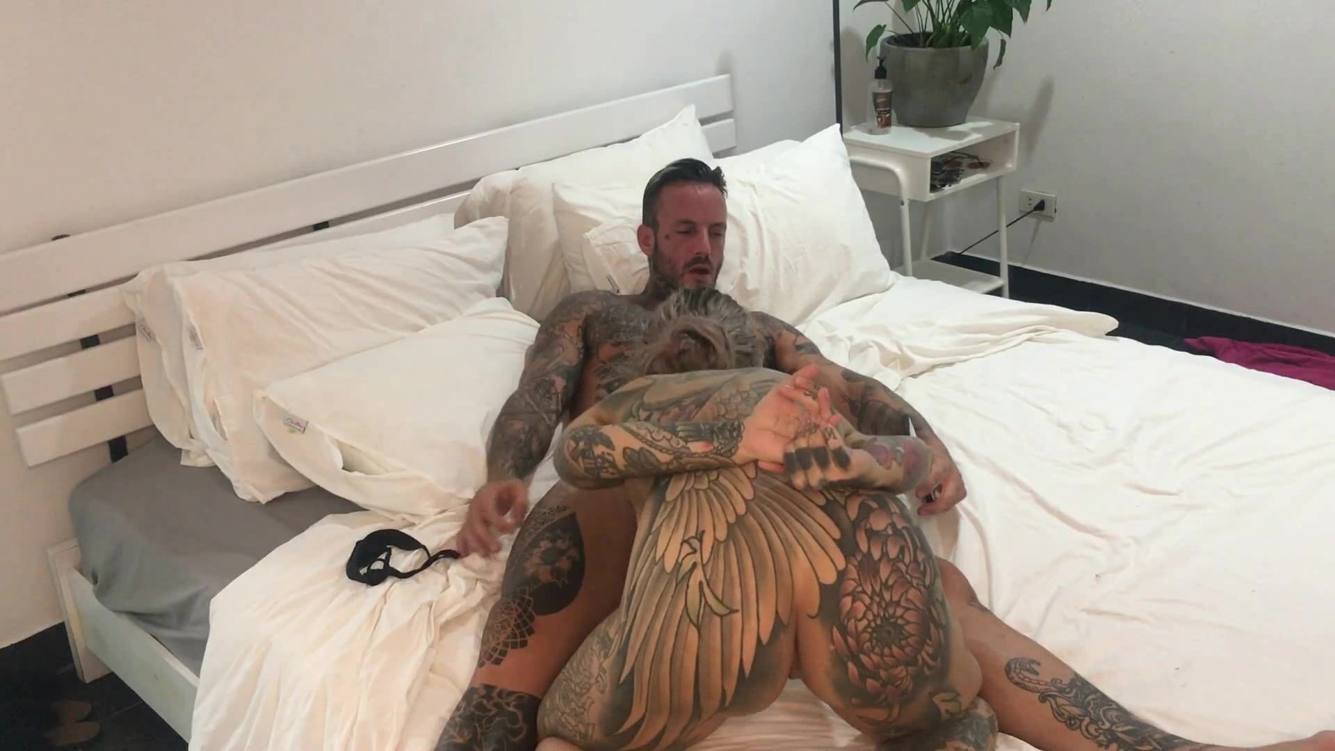 Salope pleine de tatouages faisant du sexe pour la premiere fois devant une camera