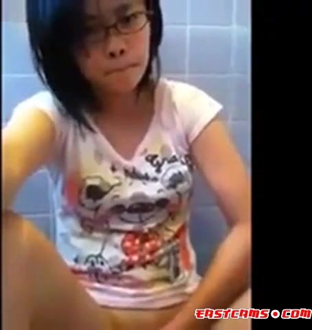 Amateur Asian Girl in Glasses Masturbating