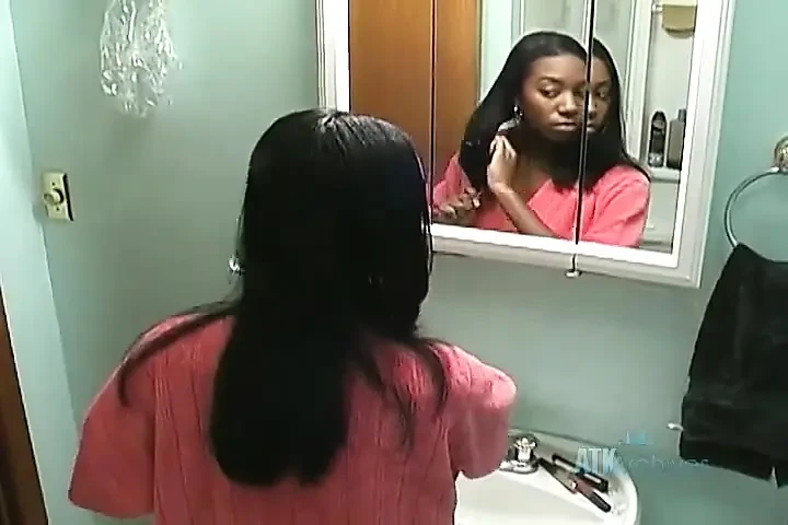 Sexy black babe Liyah strips and masturbates with her toy then takes a bath