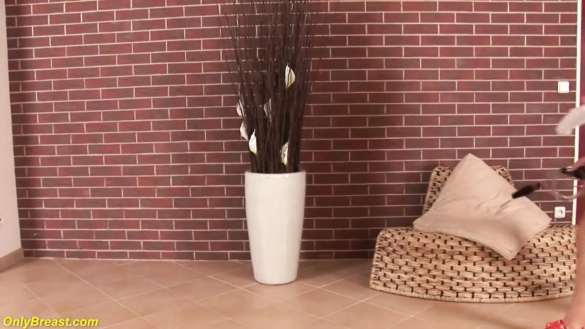 Hot sporty milf plays with her oiled boobs