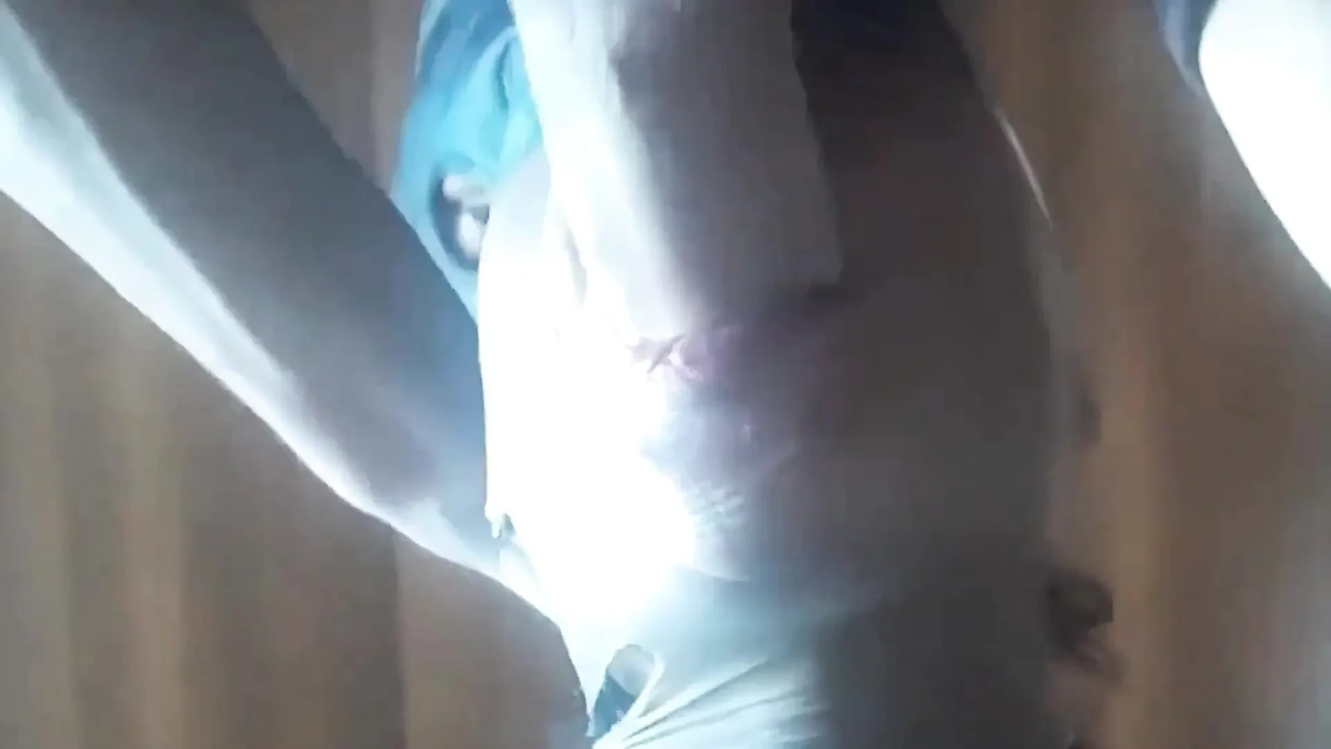 Second View of a MILF Hooded in Nylon, Blindfolded with Duct Tape, Facialized, and Cummed in Mouth
