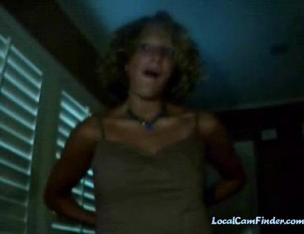 Blonde amateur performs a striptease on webcam, slowly removing her clothes to reveal a blue necklace, creating a sensual and intimate atmosphere.