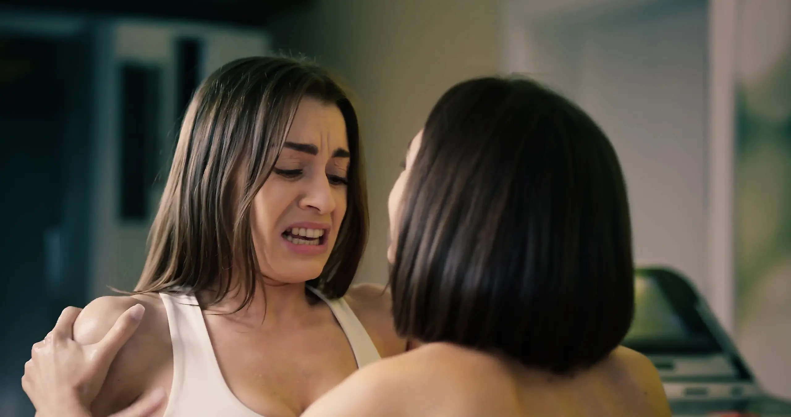 Josephine Jackson and Eve Sweet love keeping their bodies in top shape, and it truly does pay off, they are a duo of stunning hotties. Josephine is still busy running on the treadmill, while Eve is finished with her workout and is heading to relax her sore glutes in the sauna. Josephine can’t hear her anyway, she’s wearing headphones and is “in the zone” while Eve tries to explain where she’s going. Never mind anyway, it’s time to get into the booth and lay down while the how water vapours fill up the room. But it seems as if she’s not alone here, something is crawling on the walls, leaving behind a slimy trail. Eve doesn’t seem to notice it, instead closing her eyes and fully embracing this peaceful moment. It won’t stay like that for long. The strange alien worm crawls between her legs, lunging straight inside her exposed pussy, to which Eve instantly begins to panic. She takes the towel off herself and notices that her nipples are fully firm. In an instant, she becomes aroused. Her