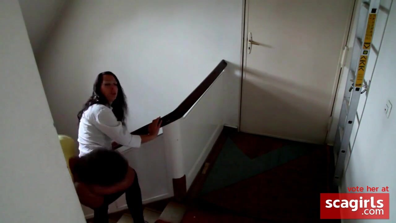A daring amateur couple takes their passion to the stairs, where they engage in a sultry blowjob session that culminates in a thrilling cumshot, with the lucky guy receiving a mouthful of his own cum.