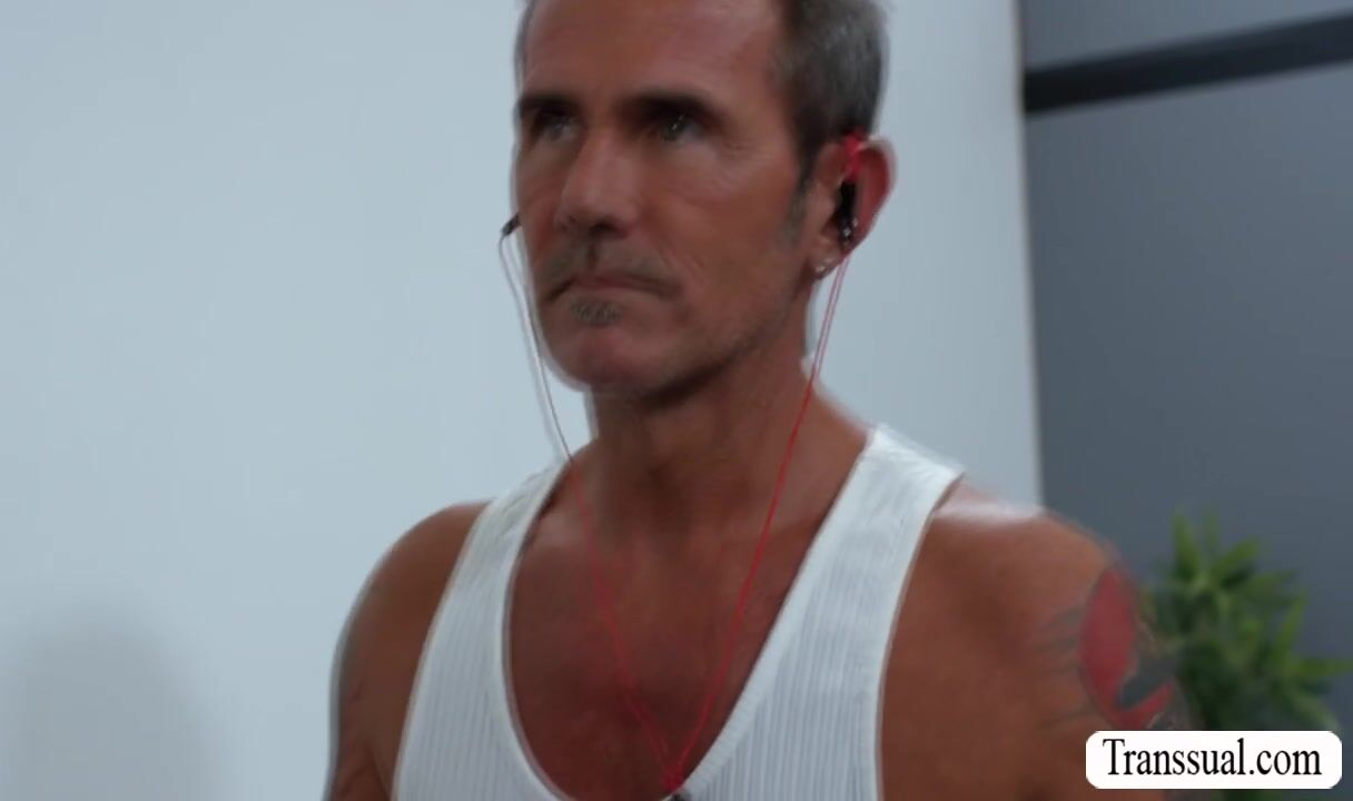Busty shemale is in the gym with this two dude.After that,they start sucking each others hard big cock and then bareback fuck their wet asses so deep and fucking hard.Go to Transsual.com for the full video of this and more.