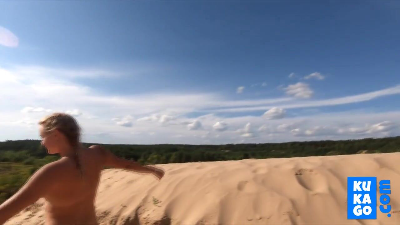 Nude Walk: Blonde Russian Teen's Naughty Sand Pit Adventure