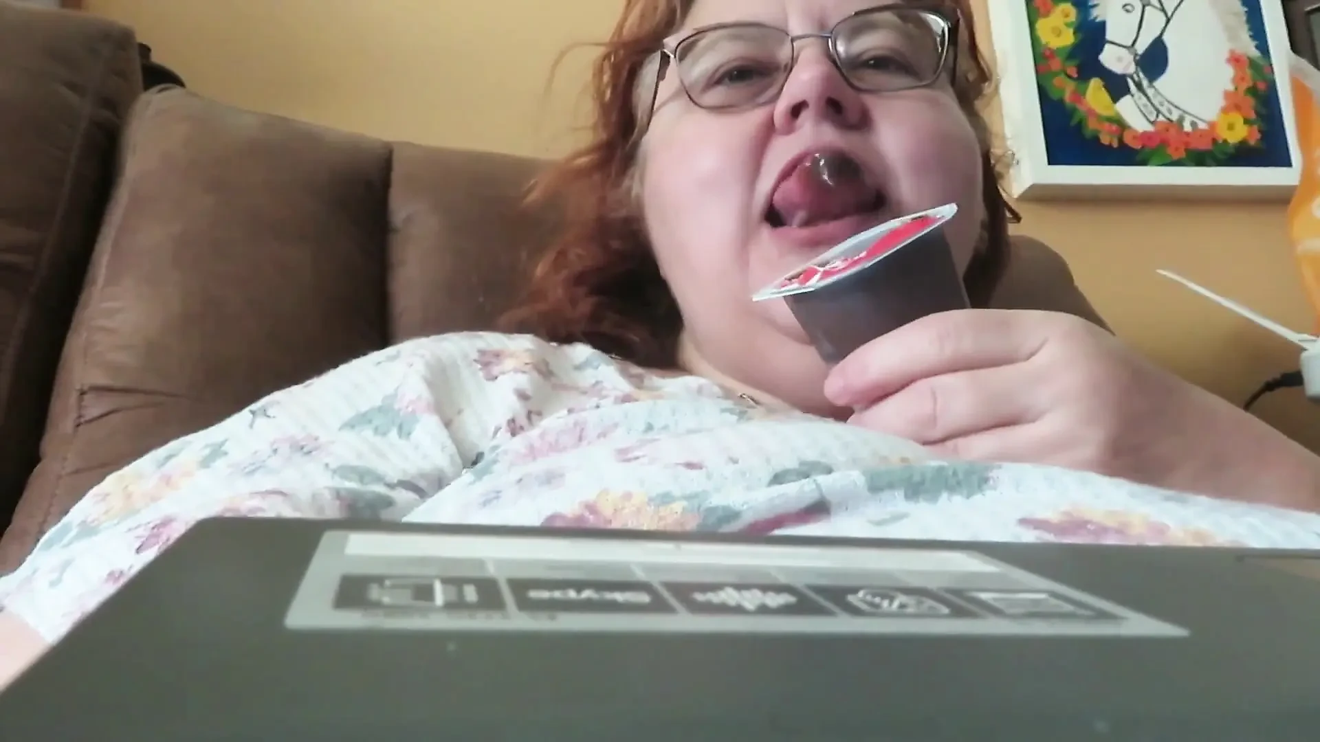 I am just bored so i decide to eat a pudding cup yummy chocolate and i thought of you watching me do it turns me on so this is for my feeder fans !