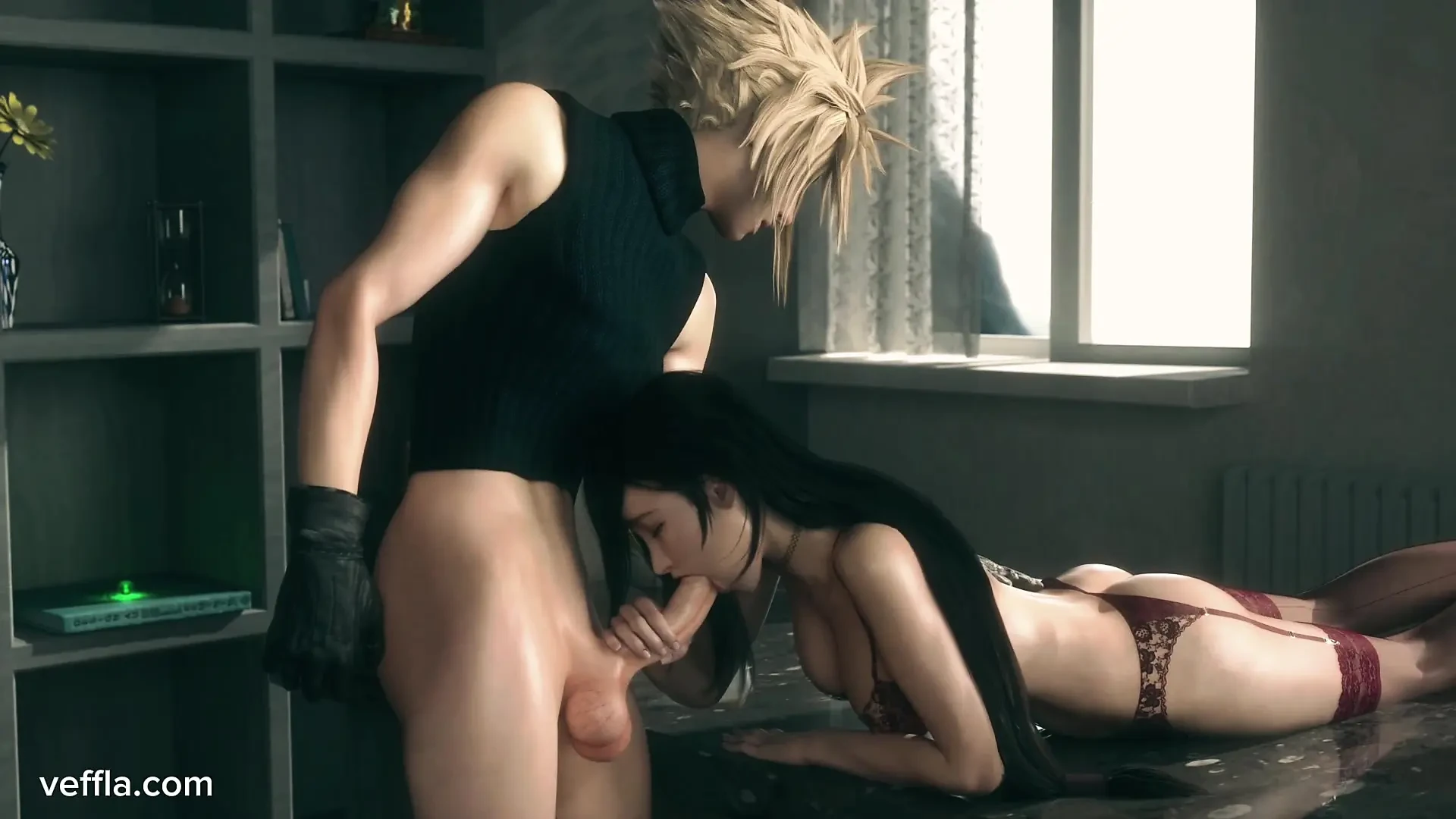Cloud Fucks Tifa's Big Tits & Jessie's Pussy - Moaning Cowgirl Creampies, Blowjobs & Swallows in Lingerie