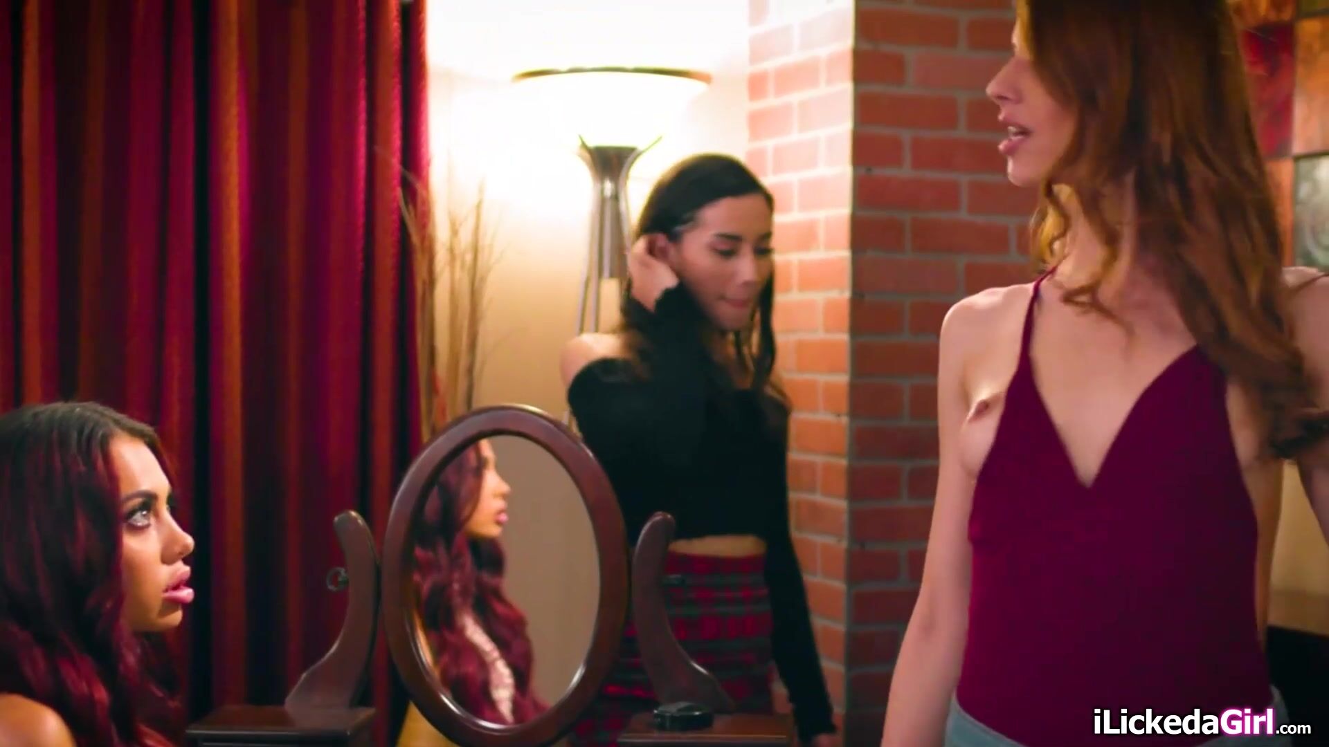 Jillian Janson do petite redhead nerd Sabina Rouge a total make over.Her teen friends Aria Lee and Aidra Fox start kissing and sucking Sabinas small tits.Jillian joins so no one is left alone.They pair up,taking turns facesitting and scissoring.