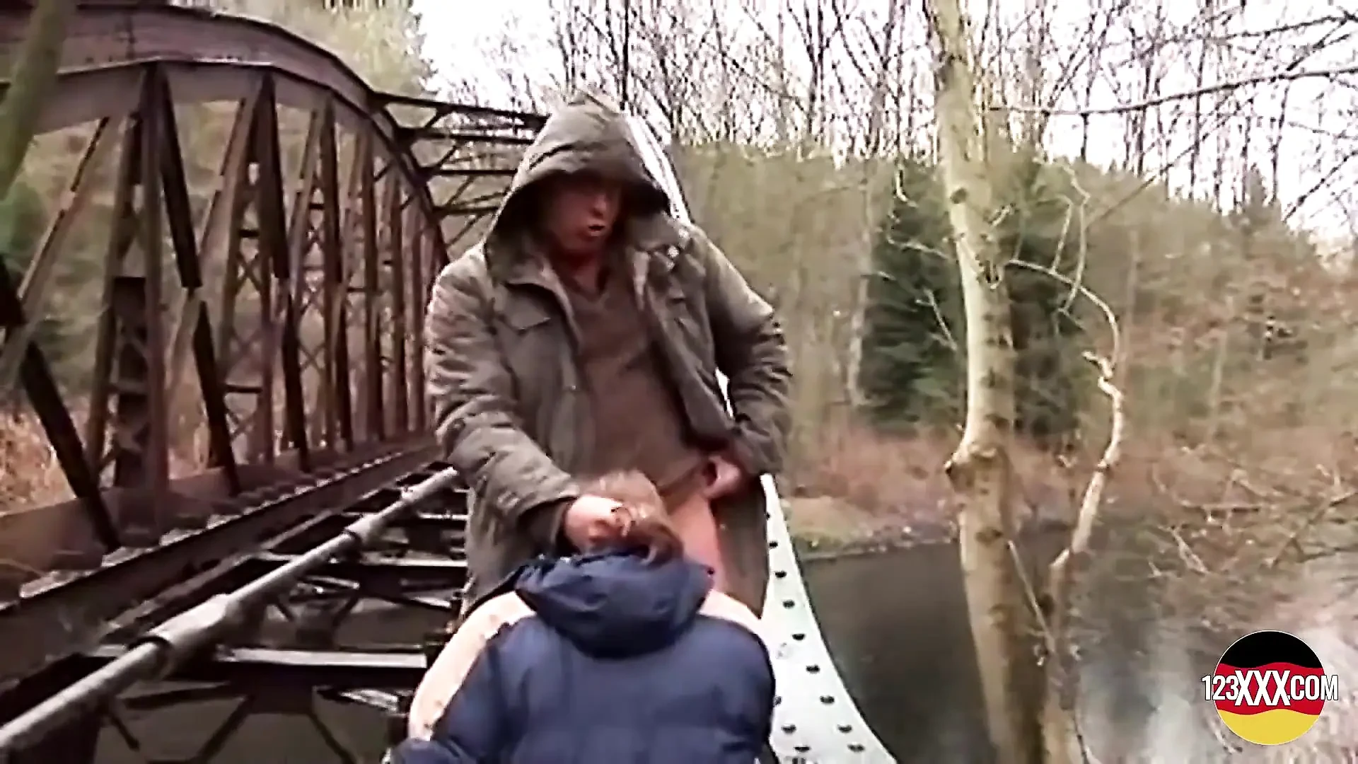 Cute Brunette Doesn't Mind Sucking and Fucking in the Rain