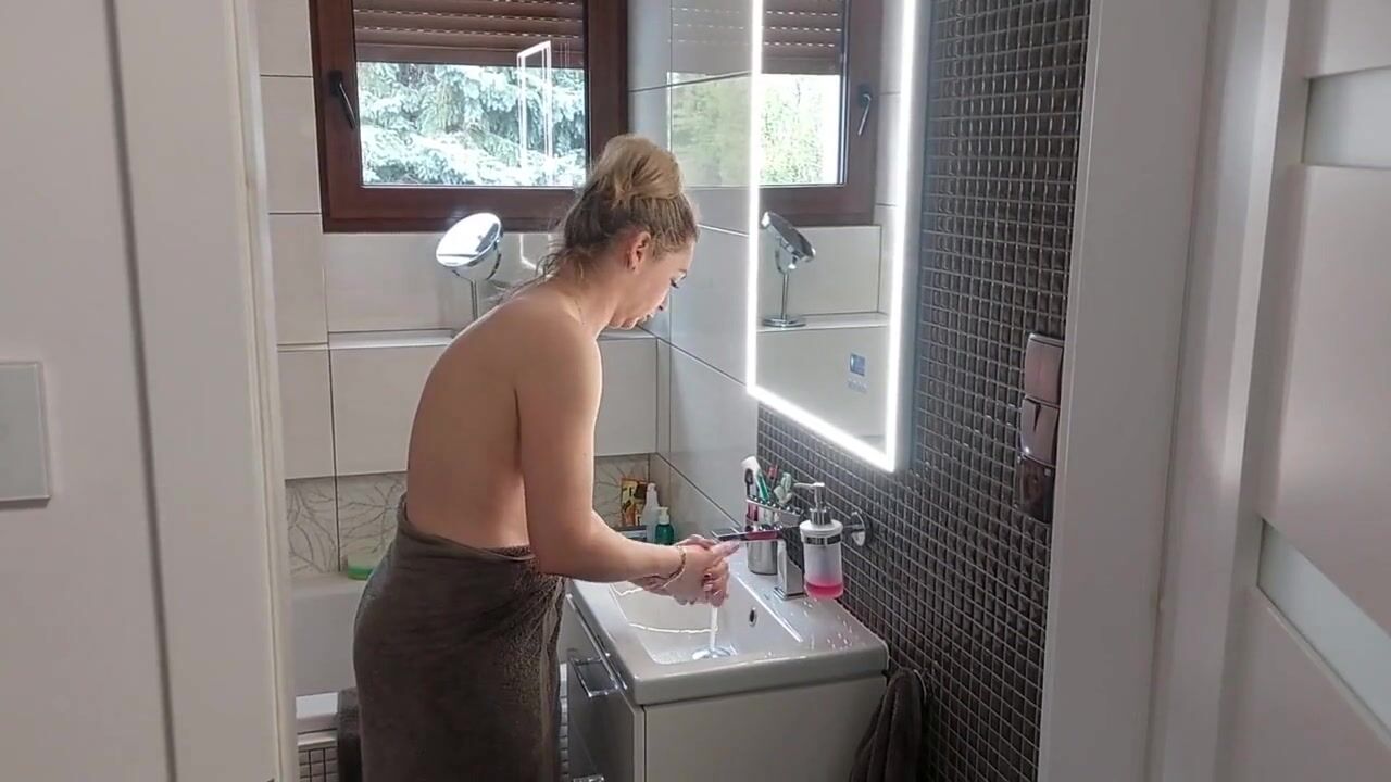 A petite blonde with small tits surprises the Amazon delivery guy with a naughty proposal. She offers him a blowjob and the chance to pound her from behind in exchange for her package. He agrees, and they have passionate, rough sex, ending with him cumming in her mouth and her swallowing his load.