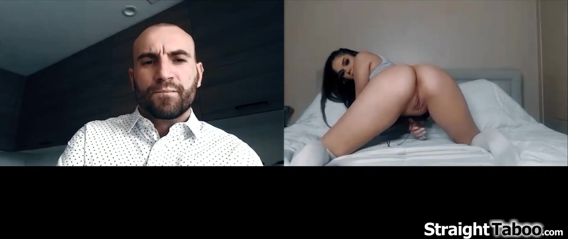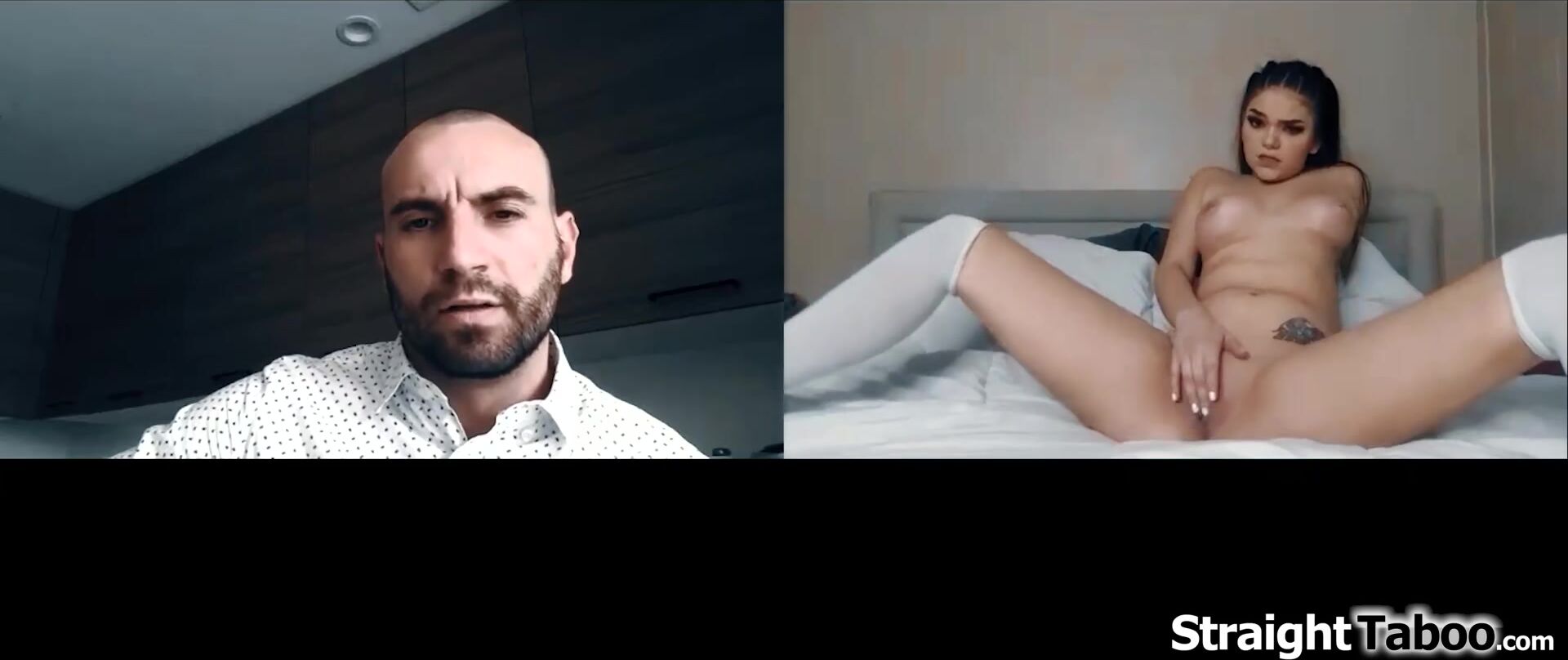 Stepdaughter Athena Faris her stepdad found out she got a tattoo and now wants her to get naked onher webcam to show it.He orders the teen to touch her pussy.The petite small tits teen gets kinda horny and she fingers her shaved snatch for an orgasm