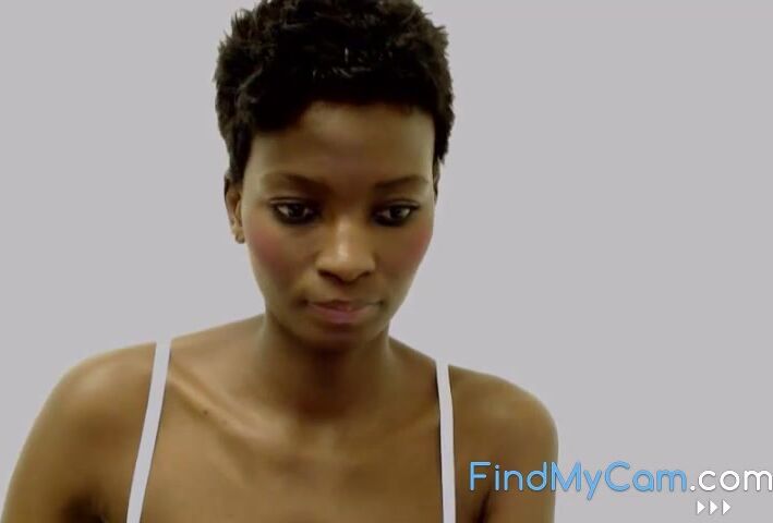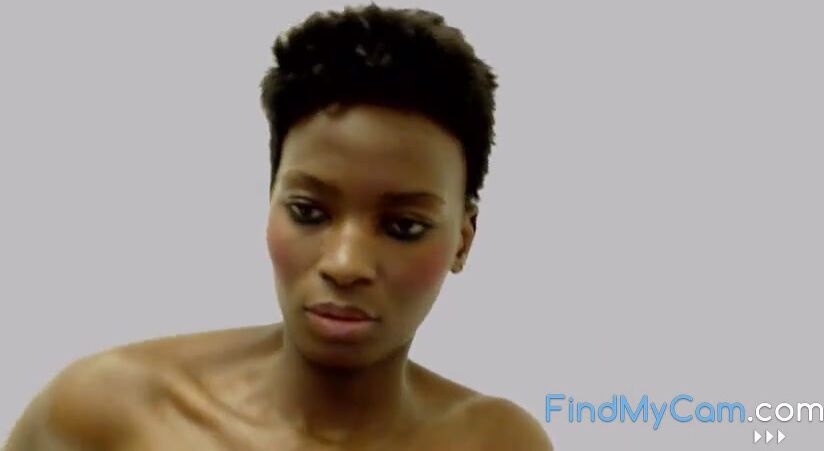 A beautiful South African woman with dark skin, big natural breasts, and small nipples teases and pleases herself on webcam, showing off her sexy, slender figure.