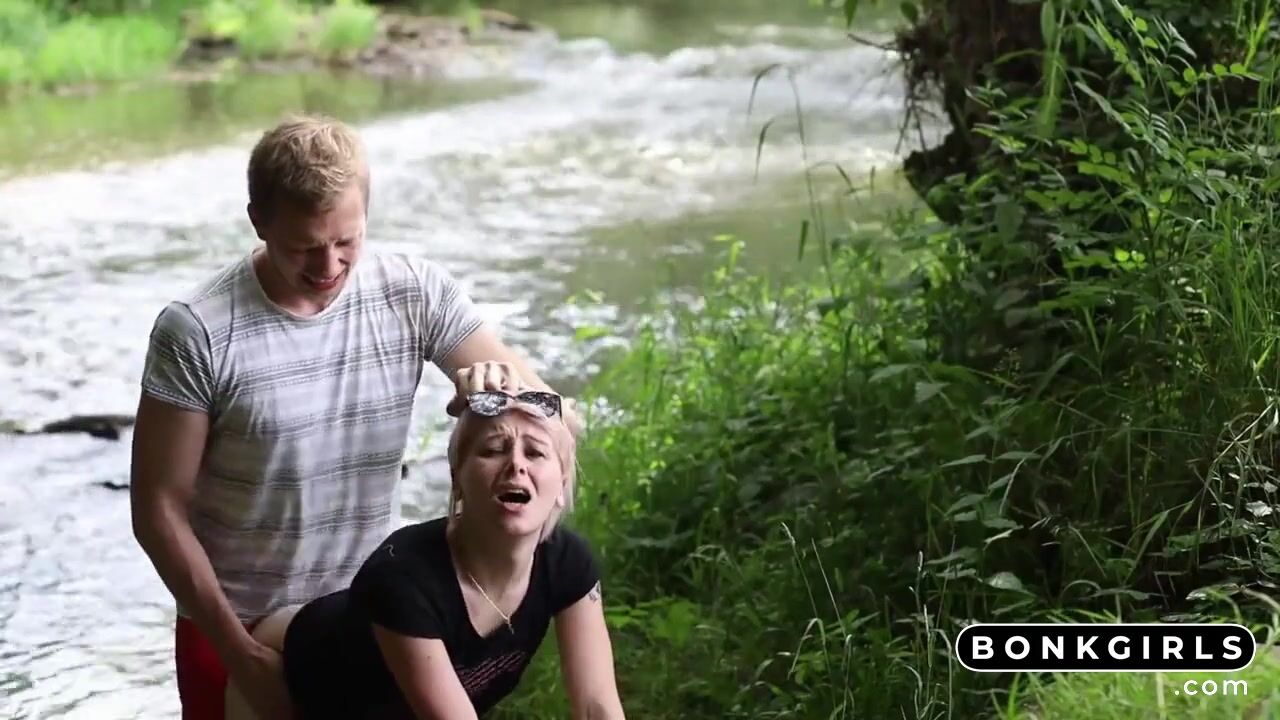 A gorgeous blonde babe enjoys a steamy outdoor adventure, sucking her man off in nature, taking a mouthful of cum with a smile, then some doggy style & orgasms.