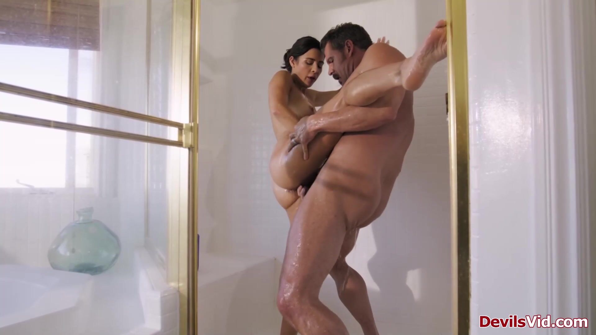 Petite teen nanny fucked by her boss while having a shower