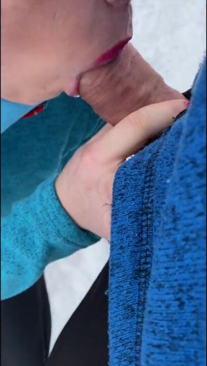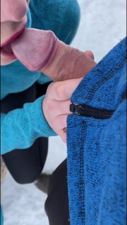 A daring amateur couple takes a walk on a winter day & can't resist each other, leading to a risky public BJ with a big finish! Will they get caught? Almost!