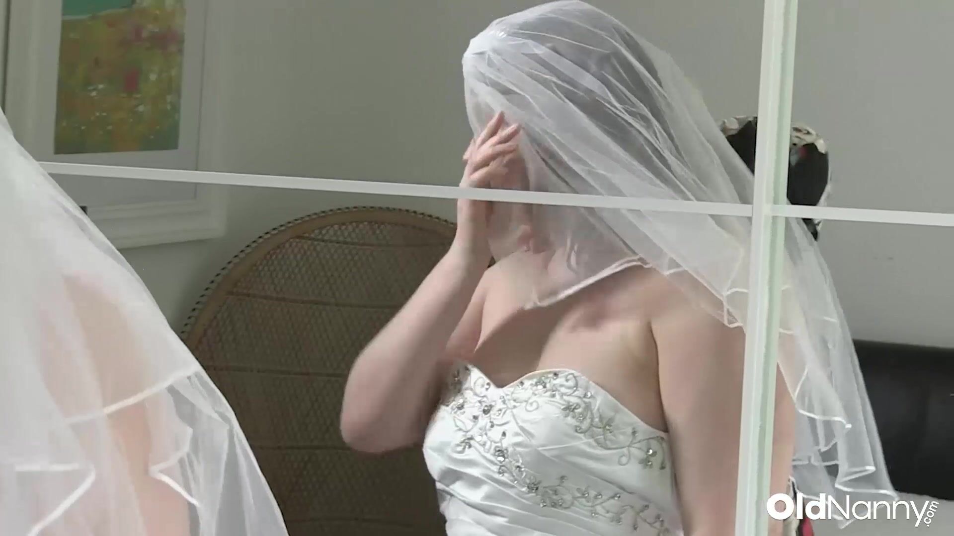 Watch this curvy BBW bride model skimpy bikinis and a stunning white gown, helped by two mature ladies. Things heat up fast into a steamy threesome with passionate kissing, breast fondling, close-up pussy fingering, and wild lesbian play on the bed.