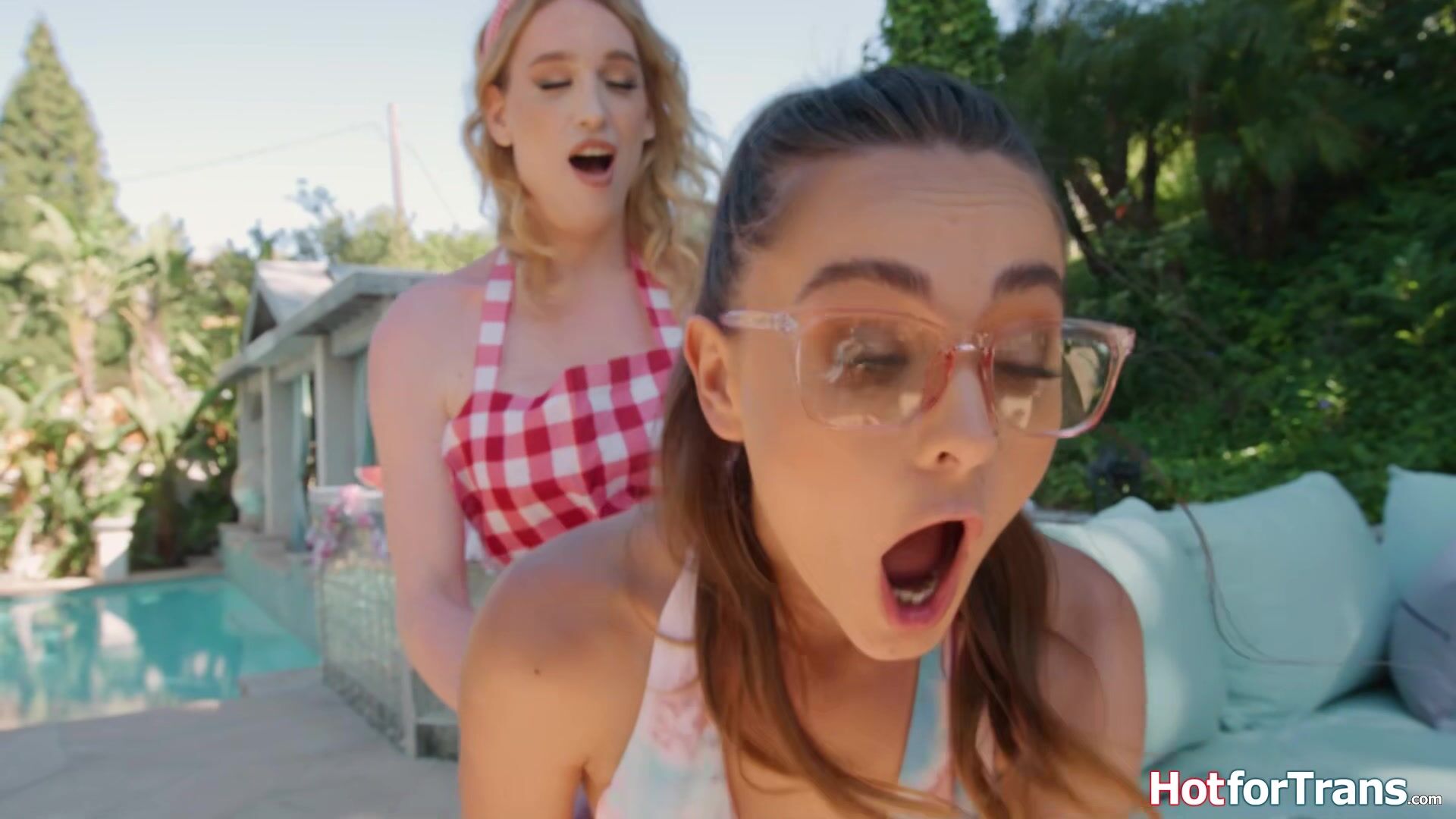 Deepthroating and fucking my shemale neighbors in the garden