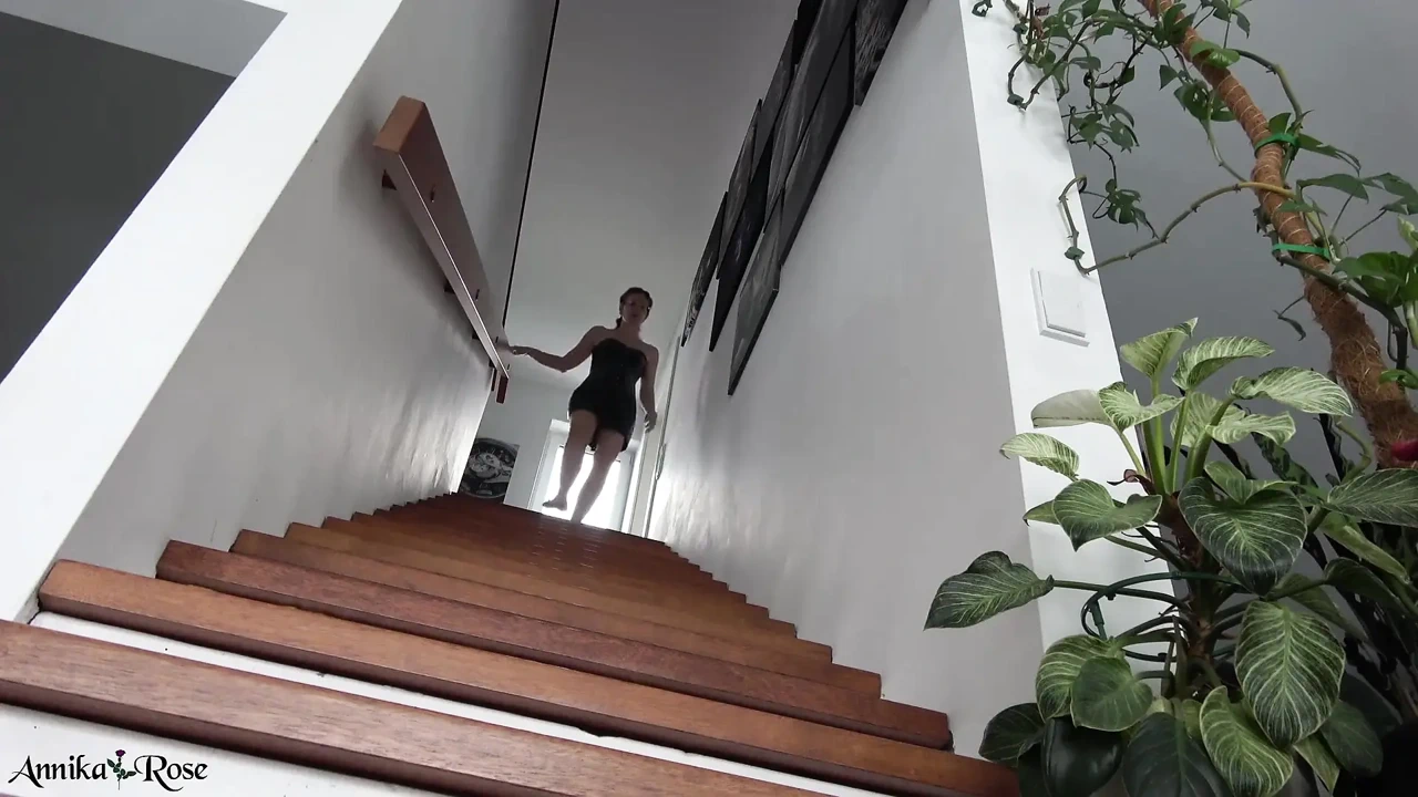 I see you from above, even though I don't know how you got in here. I come down the stairs and just pick you up in my strong arms and rock you a little. I stroke you, but after 4 minutes I just throw you out.