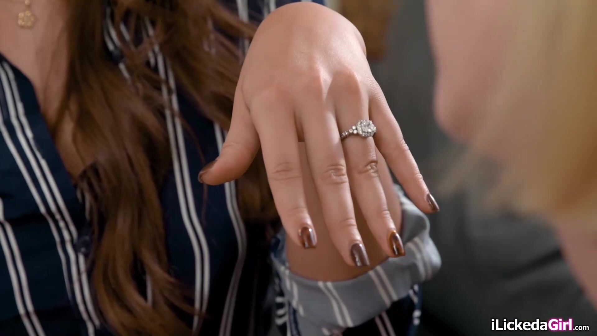 Lesbian sales agent Lilly Bell tries flirting with her brunette client Gizelle Blanco.The married woman gives in and they kiss.The blonde lesbo is sucking her big tits.Gizelle licks then fingers her hairy pussy after facesitting the petite babe.