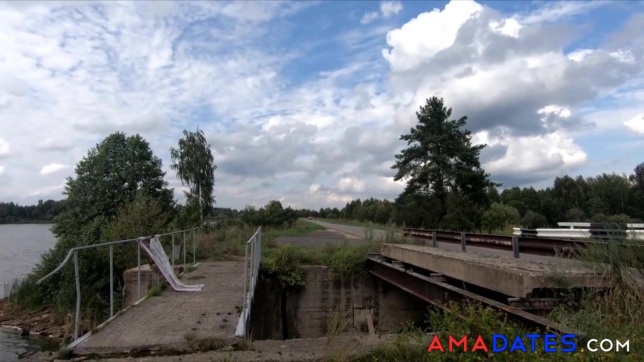 Blonde Babe Strips on the Bridge