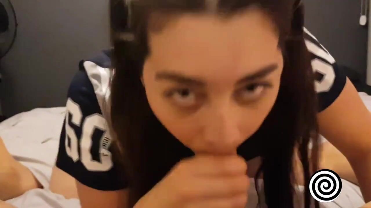 Hailey Tanner, a sexy Latina teen with a big ass, loves football and her boyfriend. She dresses up as a Dallas Cowboys cheerleader and gives him a blowjob, showing her cowgirl skills.