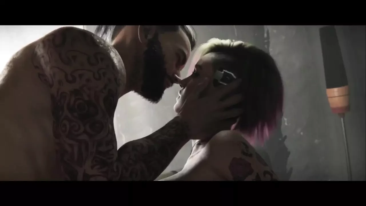 A character steps out of his car in the middle of nowhere. He casually lights up a cigar, watching as the sky is covered in haze and clouds. He’s finally here to unwind and meet the gorgeous Judy Alvarez from Cyberpunk 2077. She’s one hell of a slut, she is sucking and fucking like a real queen! Before he knows it, Judy takes his dick into her mouth and starts giving him a rough blowjob. He grabs her head and thrusts it onto his huge cock. What an incredible deep throat! He cums right into her mouth, and the sperm drips from her lips onto her tits. But she can please him in other ways too. Without even undressing, he shoves his cock into her sweet, wet pussy. Judy is stunning - her body covered in tattoos and piercings, and it turns him on like crazy. Seems like it’s time to finger her pussy until she cums. Judy cums almost instantly, filling the room with moans. She squirts, which only excites the guy even more. They keep fucking hard, switching to passionate kisses. The man cu