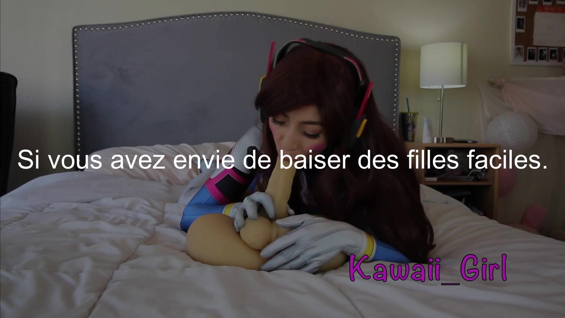 Brune en cosplay chevauche un gros gode avec un plug dans le cul