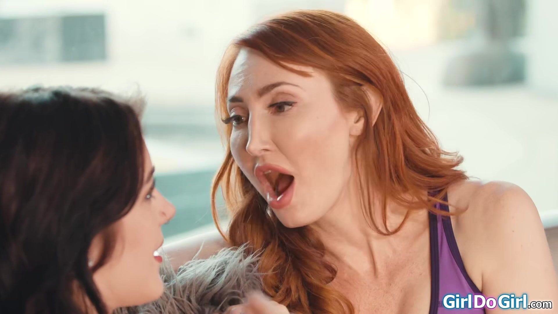 Stepdaughter Rosalyn Sphinx is mad that her busty stepmom Kendra James drank her love potion.The milf turns horny and starts to kiss the petite teen and sucks on her small boobs.The big tits redhead cougar licks her hairy pussy and gets oral